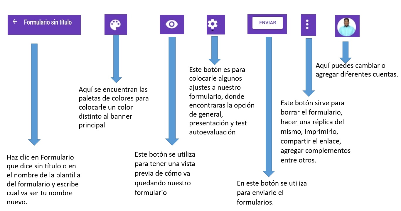 colócale un nombre a tu formulario: en la parte superior izquierda, haz clic en Formulario que dice sin título o en el nombre de la plantilla del formulario y escribe cual va ser tu nombre nuevo.