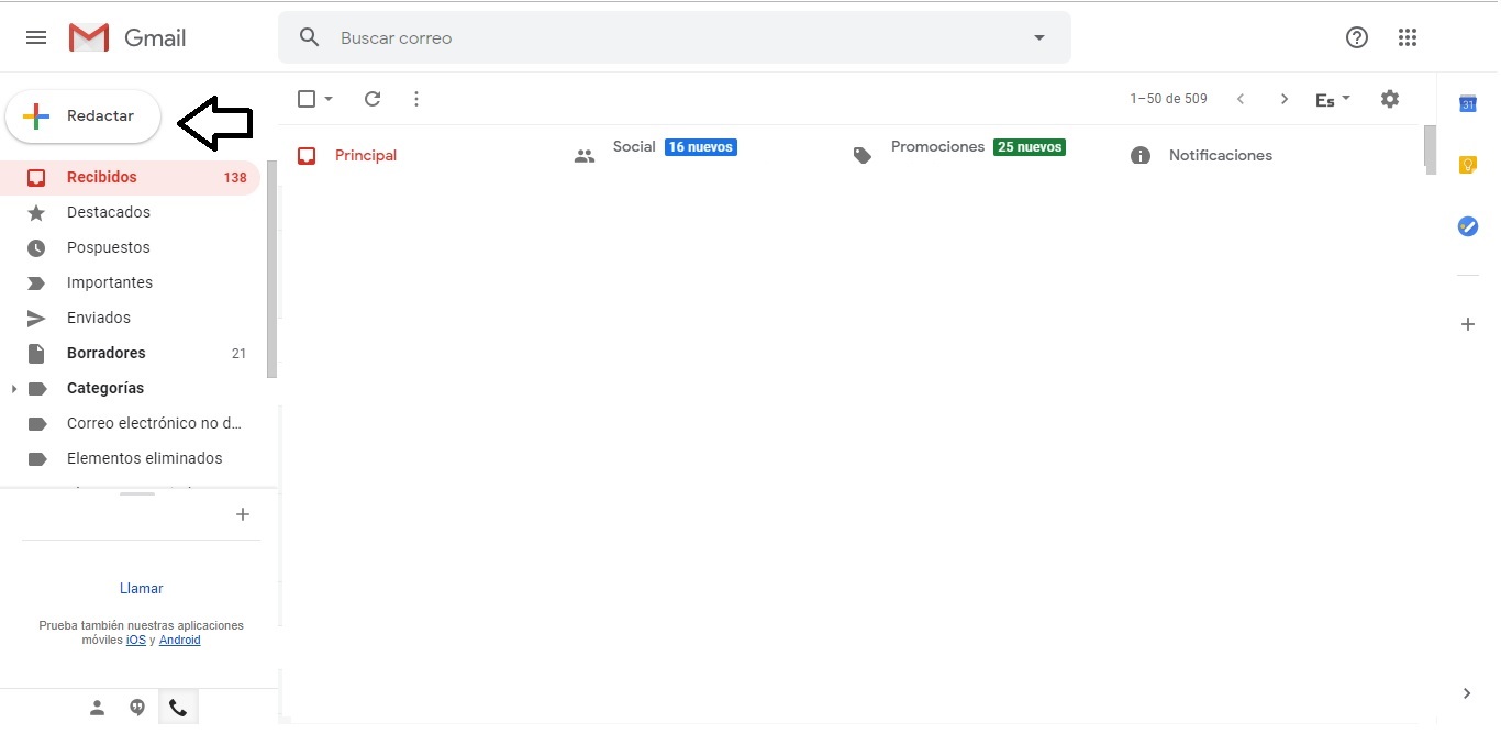 Abrir Gmail en tu computadora y presiona el botón redactar